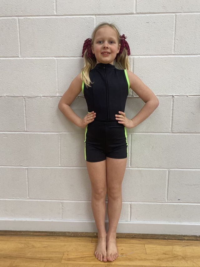 Millie Zip Up Leotard: can be worn during Acro, MT, Street and Dance Company classes. Model is wearing a size 2.
